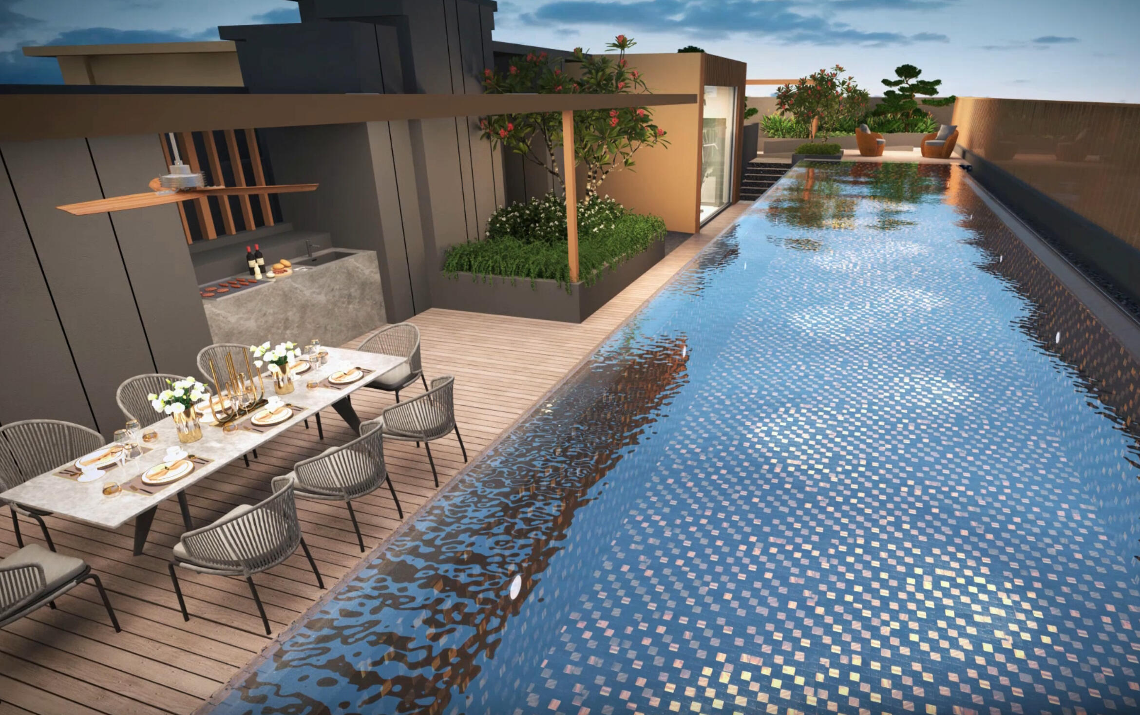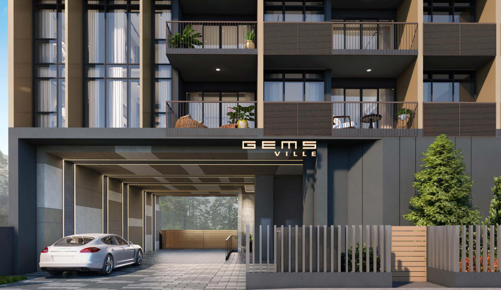 modern façade, featuring a distinctive Brise Soleil architectural form with balconies adorning every unit.Gems Ville provides unparalleled views of the lively surrounding neighbourhood. A spacious jewel of
